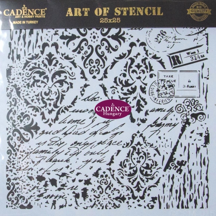 Prémium minőségű műanyagból készült mix media design stencil, bármilyen felülethez, többszöri használatra. Hasznáható bármilyen festékhez, stencilkrémekhez, pasztákhoz. A festék vagy paszta felkenése után, amely történhet stencilecsettel vagy spatulával, azonnal távolítsuk el a stencilt a felületről. Utána meleg, mosogatószeres vízzel tísztítsuk meg a stencilt és a következő használat előtt hagyjuk megszáradni. A stencil felhelyezése előtt a stencilt mindig fújjuk le Cadence Stencil Spayvel, hogy pontosan tudjuk a felületen rögzíteni a sablont, precíz legyen a lenyomat, festék megfolyás nélkül.