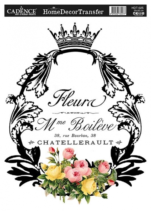 Vintage stílusú, egyszerűen alkalmazható transzfermatricák, bármilyen felület dekorálásához. Az előkészített, bármilyen színre lefestett felületre felvihetjük a transzfermatricákat. Mérete 25 x 35 cm.