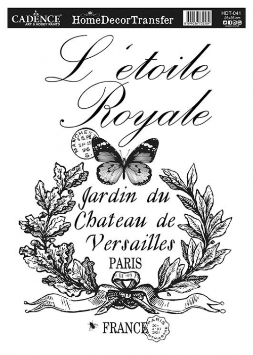 Vintage stílusú, egyszerűen alkalmazható transzfermatricák, bármilyen felület dekorálásához. Az előkészített, bármilyen színre lefestett felületre felvihetjük a transzfermatricákat. Mérete 25 x 35 cm.