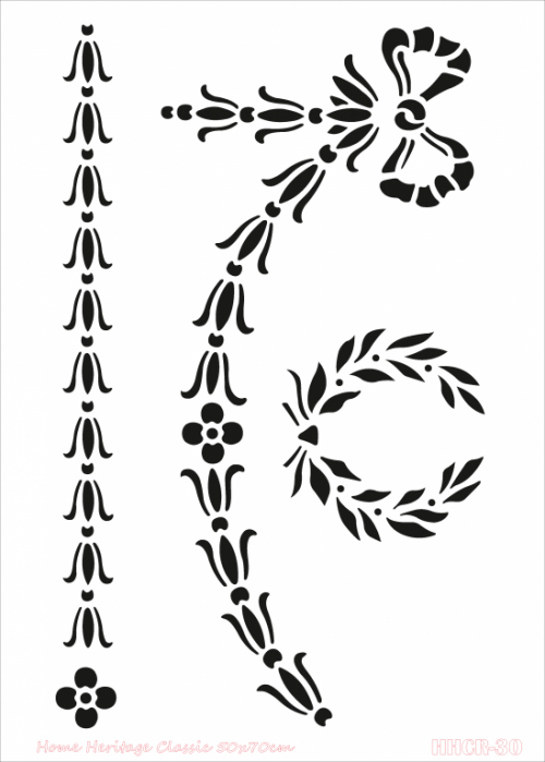 Home heritage faldekorációs stencil. Prémium minőségű műanyagból készült design stencil, bármilyen felülethez, többszöri használatra. Hasznáható bármilyen festékhez, stencilkrémekhez, pasztákhoz, Cadence Concrete Stucco-hoz. A festék vagy paszta felkenése után, amely történhet stencilecsettel vagy spatulával, azonnal távolítsuk el a stencilt a felületről. Utána meleg, mosogatószeres vízzel tísztítsuk meg a stencilt és a következő használat előtt hagyjuk megszáradni. A stencil felhelyezése előtt a stencilt mindig fújjuk le Cadence Stencil Spayvel, hogy pontosan tudjuk a felületen rögzíteni a sablont, precíz legyen a lenyomat, festék megfolyás nélkül.