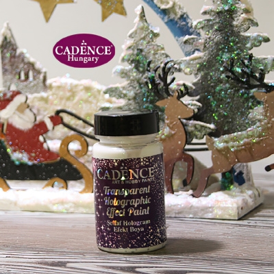 Vízbázisú, átlátszó festék, holografikus glitter darabokkal és csillámokkal. A holografikus csillogás egyedülálló, olyan, mintha színek csillogó és szikrázó kaleidoszkópjára tekintett volna. Ecsettel vagy szivaccsal hordjuk fel a tiszta felületre, tetszőleges vasragságban, üvegre alapozás nélkül is kenhető. Különösen ajánlott csillogó effektekhez, karácsonyi dekorációkhoz. Az eszközöket langyos, mosószeres vízzel tisztítsuk használat után. Mérgező anyagot nem tartalmaz, hitelesítve a EN 71 & CE. által.