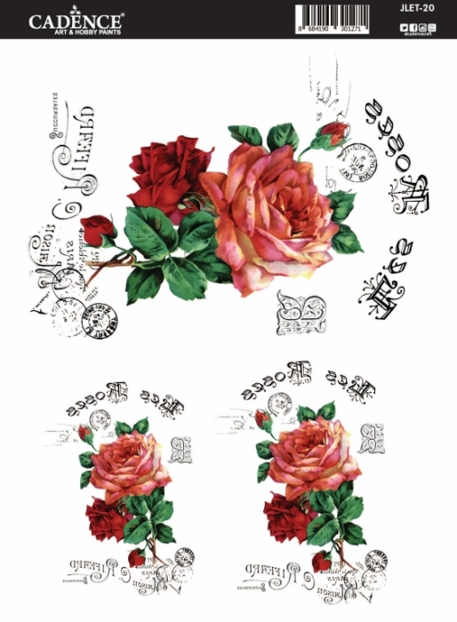 Vintage stílusú, egyszerűen alkalmazható transzfermatricák, bármilyen felület dekorálásához. Az előkészített, bármilyen színre lefestett felületre felvihetjük a transzfermatricákat. Mérete 25 x 35 cm.