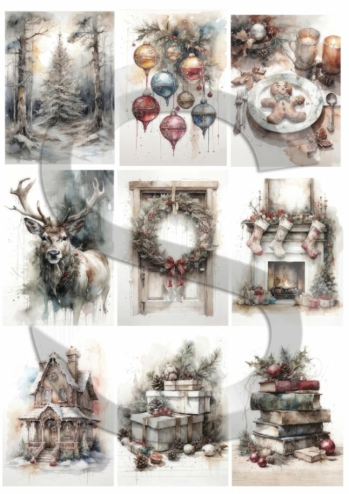 Karácsonyi akvarell 2., A4-s méretű rizspapír