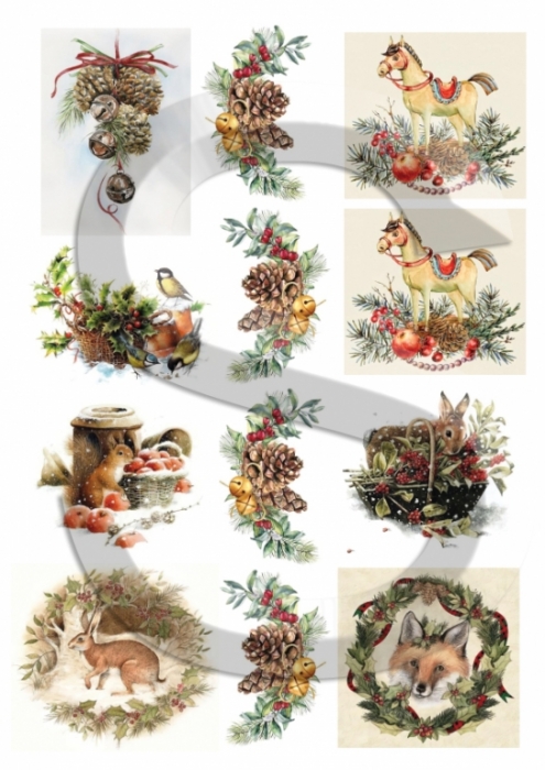 Csomag tartalma: 4 db filigrán fadísz, 1 db A4-s méretű rizspapír a díszekhez méretezett képekkel