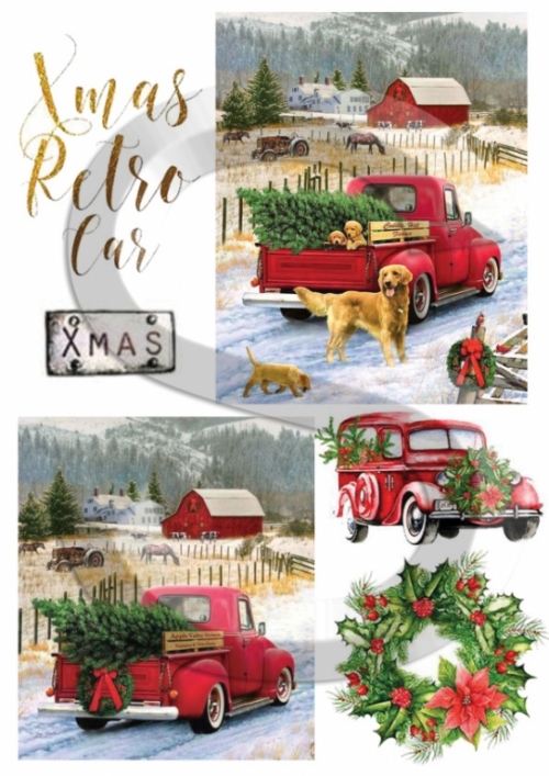 Karácsonyi piros autó, A4-s méretű rizspapír