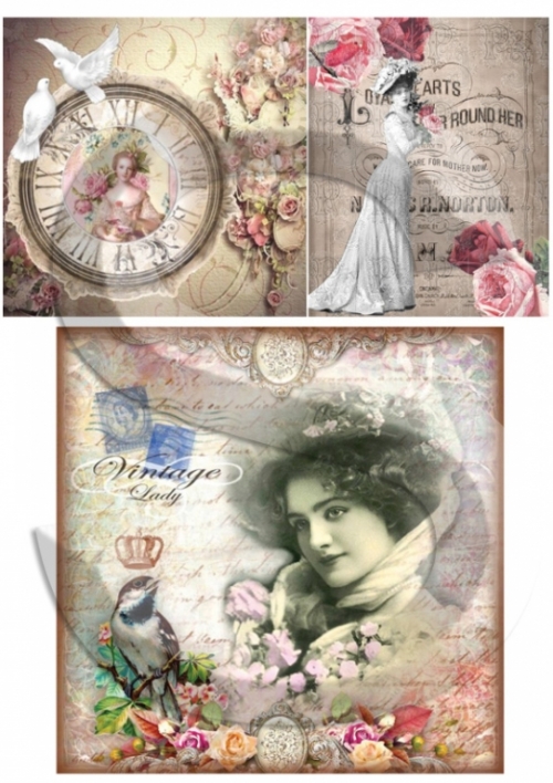 A4-s méretű, 20 gr-s rizspapírra készült, egyedi tervezésű és nyomtatású rizspapírok, découpage technikához. Felragasztásához a Découpage Plus ragasztót használd, a kész munkát vízbázisú akril lakkal védd le.