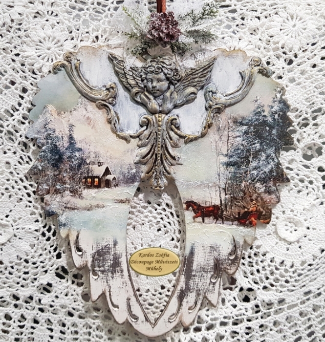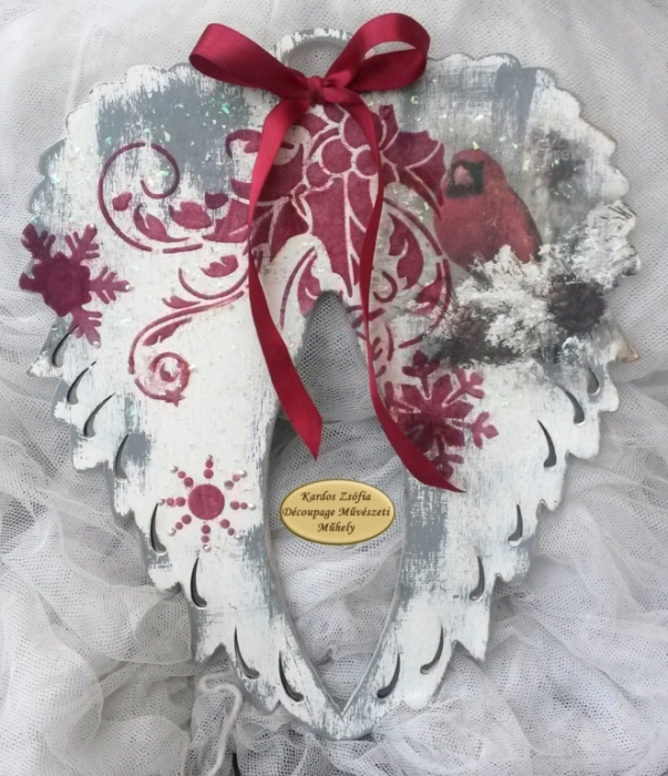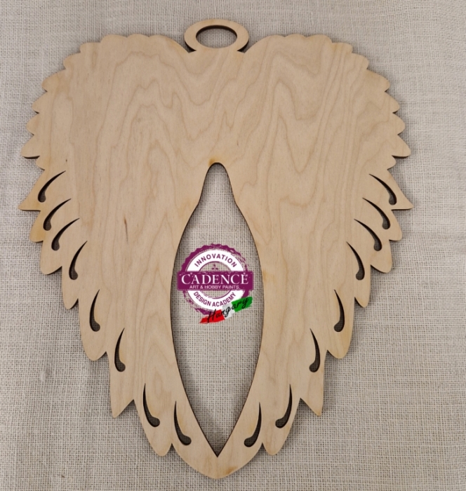 Lézervágott, felakasztható fa angyalszárny alap ajtókopogtatóhoz vagy más felakasztható dísz alapjának. Mérete: 40 x 35 x 1 cm