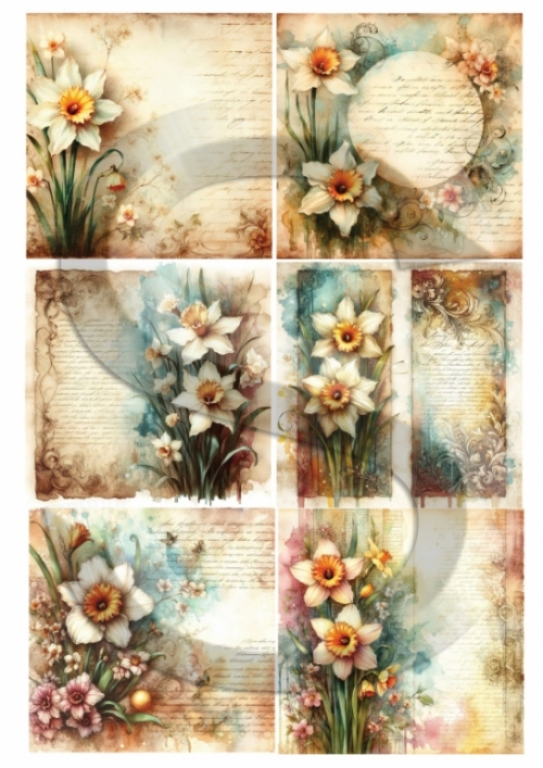 A4-s méretű, 20 gr-s rizspapírra készült, egyedi tervezésű és nyomtatású rizspapír, découpage technikához. Felragasztásához a Découpage Plus ragasztót használd, a kész munkát vízbázisú akril lakkal védd le.