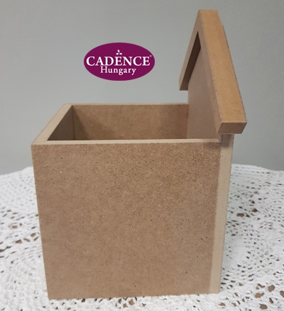 Négyzet alapú nyitott tárolófiók, házpanellel. Rendkivül sokrétűen használható és dekorálható. Alapanyaga MDF. Méretei: fiókrész 15 x 15 cm, házpanel magassága 26 cm, szélesség 9 cm, szélessége 15 cm.