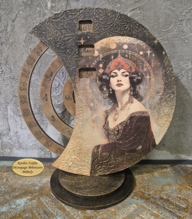 Lézervágott, a forgatható naptár körpenel átméreője 27 cm, mix media dekorációkhoz.