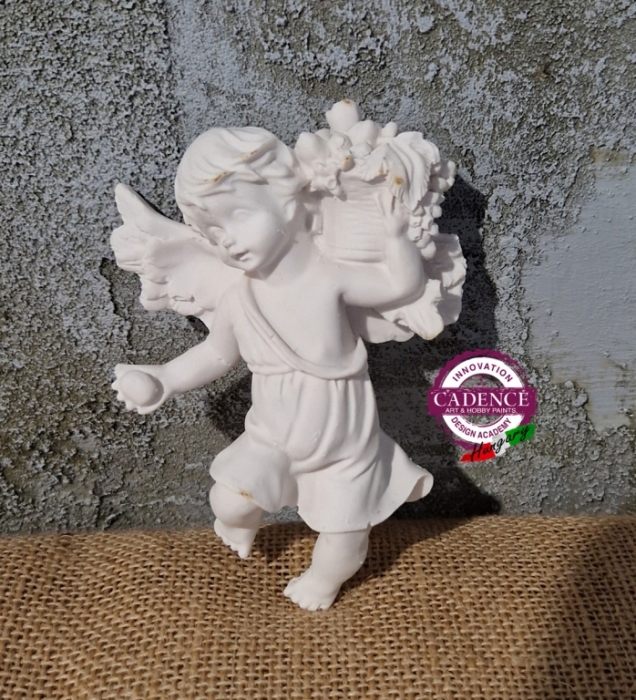 Gyönyörű, részletgazdag angyalka figura, hófehér polyester anyagból, nagyszerű dekoráció lehet asztaldíszhez, koszorúhoz, kopogtatóhoz. Mérete 7 cm széles, 9 cm magas. Festhető, dekorálható bármilyen Cadence festékkel és effekt termékkel.