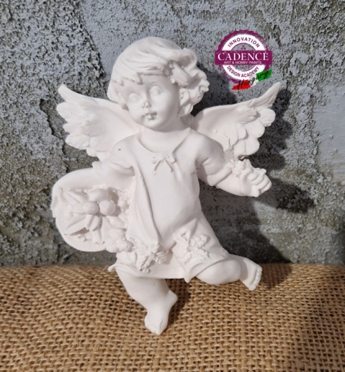 Gyönyörű, részletgazdag angyalka figura, hófehér polyester anyagból, nagyszerű dekoráció asztaldísz vagy koszorú kiegészítőjének. Mérete 7 cm széles, 9 cm magas. Festhető, dekorálható bármilyen Cadence festékkel és effekt termékkel.