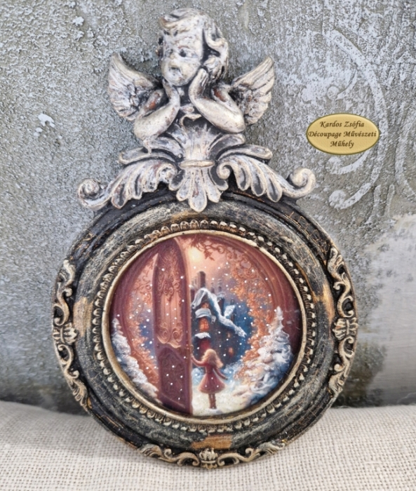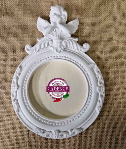 Gyönyörű, részletgazdag könyöklő angyalkás képkeret hófehér polyester anyagból, különböző mix media dekorációakhoz. Mérete 14 cm széles, 20 cm magas. Hozzávaló fa hátlappal. Festhető, dekorálható bármilyen Cadence festékkel és effekt termékkel.