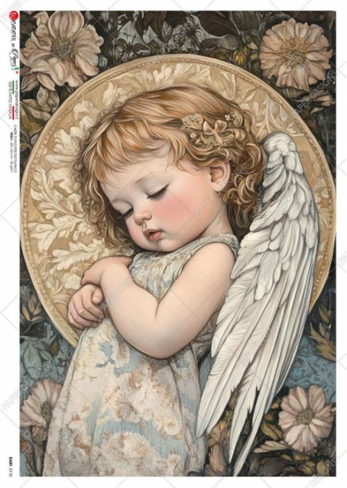 Minőségi olasz rizspapír, A5 méretben, découpage technikához. A méretet az ár alatt a kiszerelésnél tudod kiválasztani. Felragasztásához a Découpage Plus ragasztót használd, a kész munkát vízbázisú akril lakkal védd le.