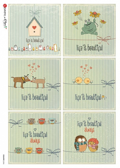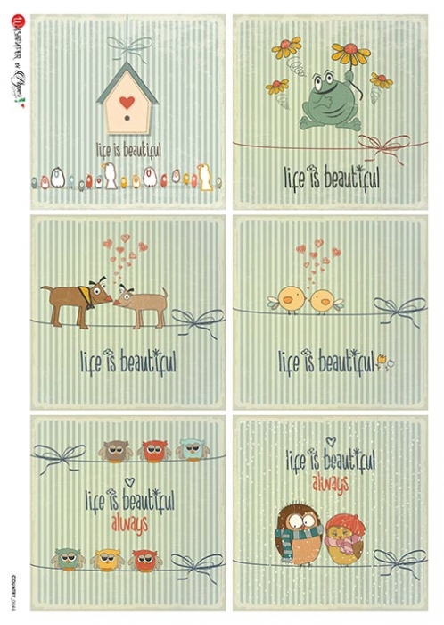 Minőségi olasz rizspapír A4-s méretben, découpage technikához. Felragasztásához a Découpage Plus ragasztót használd, a kész munkát vízbázisú akril lakkal védd le.