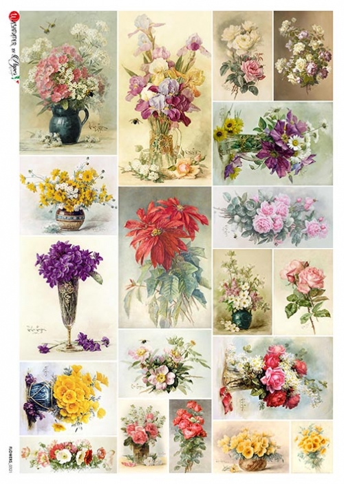 Minőségi olasz rizspapír A3-s méretben, découpage technikához. Felragasztásához a Découpage Plus ragasztót használd, a kész munkát vízbázisú akril lakkal védd le.