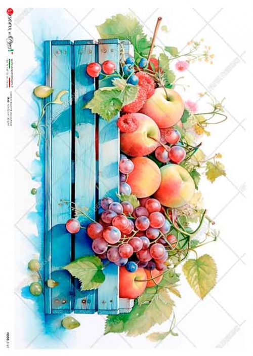 Minőségi olasz rizspapír A5-s méretben, découpage technikához. Felragasztásához a Découpage Plus ragasztót használd, a kész munkát vízbázisú akril lakkal védd le.