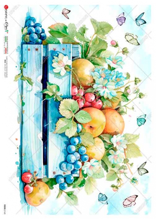 Minőségi olasz rizspapír A3-s méretben, découpage technikához. Felragasztásához a Découpage Plus ragasztót használd, a kész munkát vízbázisú akril lakkal védd le.