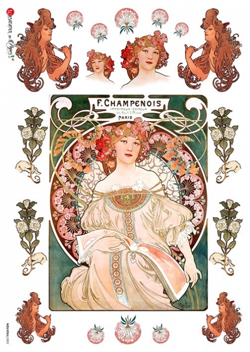 Minőségi olasz rizspapír, A4 méretben, découpage technikához. Felragasztásához a Découpage Plus ragasztót használd, a kész munkát vízbázisú akril lakkal védd le.