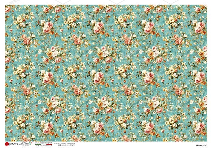 Minőségi olasz rizspapír A3-s méretben, découpage technikához. Felragasztásához a Découpage Plus ragasztót használd, a kész munkát vízbázisú akril lakkal védd le.