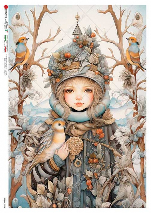 Minőségi olasz rizspapír, háromféle - A3, A4, A5 – választható méretben, découpage technikához. A méretet az ár alatt a kiszerelésnél tudod kiválasztani. Felragasztásához a Découpage Plus ragasztót használd, a kész munkát vízbázisú akril lakkal védd le.