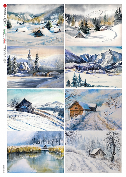 Minőségi olasz rizspapír, háromféle - A3, A4, A5 – választható méretben, découpage technikához. A méretet az ár alatt a kiszerelésnél tudod kiválasztani. Felragasztásához a Découpage Plus ragasztót használd, a kész munkát vízbázisú akril lakkal védd le.
