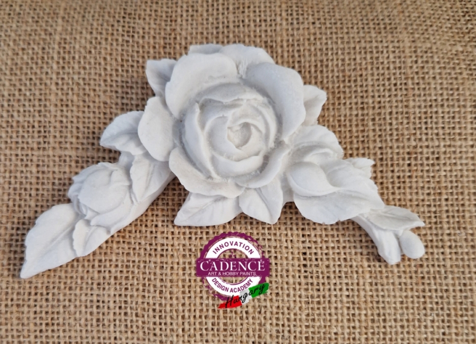 Gyönyörű, részletgazdag díszítő elem hófehér polyester anyagból, különböző mix media dekorációakhoz. Mérete 10 cm széles, 10 cm magas. Festhető, dekorálható bármilyen Cadence festékkel és effekt termékkel.