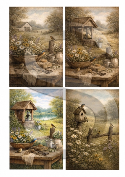A4-s méretű, 20 gr-s rizspapírra készült, egyedi tervezésű és nyomtatású rizspapír, découpage technikához. Felragasztásához a Découpage Plus ragasztót használd, a kész munkát vízbázisú akril lakkal védd le.